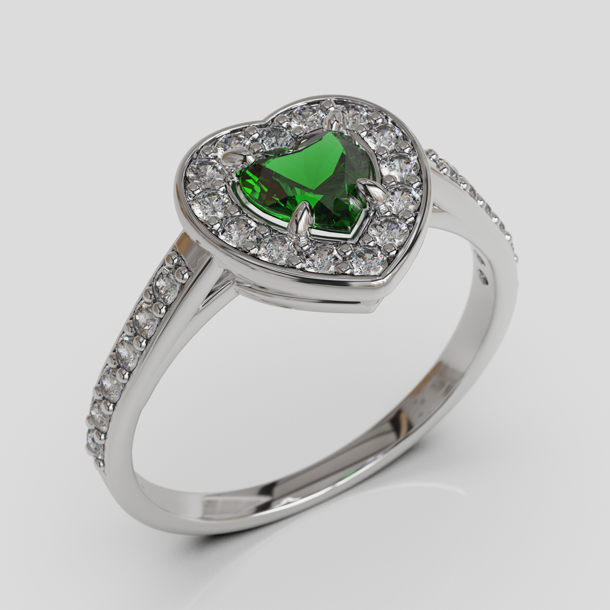 Romántico y resplandeciente, este anillo destaca por su delicado diseño inspirado en cuentos de hadas. Su piedra central en forma de corazón, rodeada por un halo de brillantes, crea un efecto luminoso y encantador que captura todas las miradas. La banda realzada con detalles brillantes aporta sofisticación y elegancia, convirtiéndolo en la elección perfecta para quienes buscan un anillo de compromiso lleno de dulzura, brillo y significado. Ideal para celebrar un amor intenso, único y eterno.