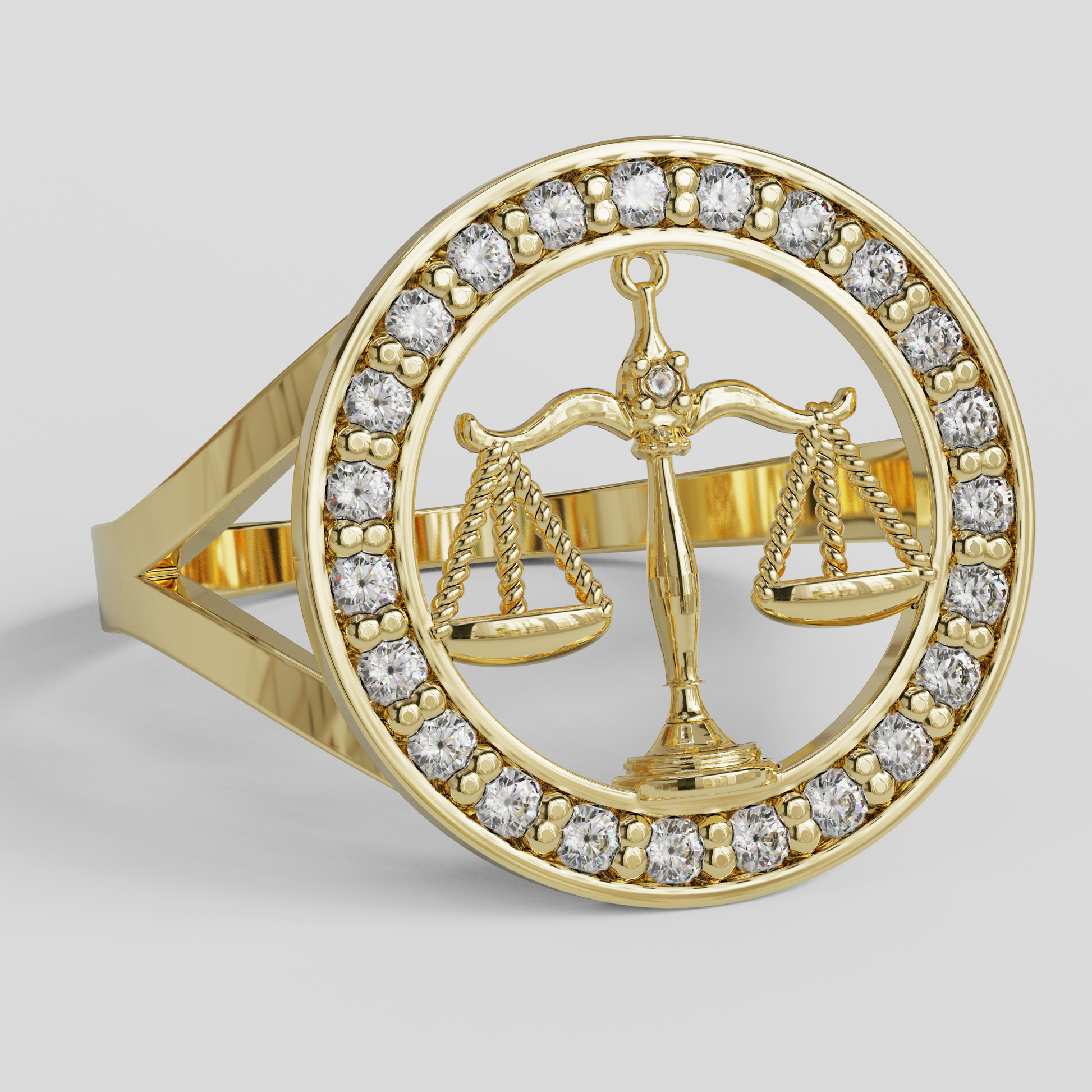 Balance es un anillo de gran presencia, concebido a partir de una forma circular que concentra la atención en su centro. La figura de la balanza se presenta como eje del diseño, representando equilibrio, justicia y solidez conceptual.