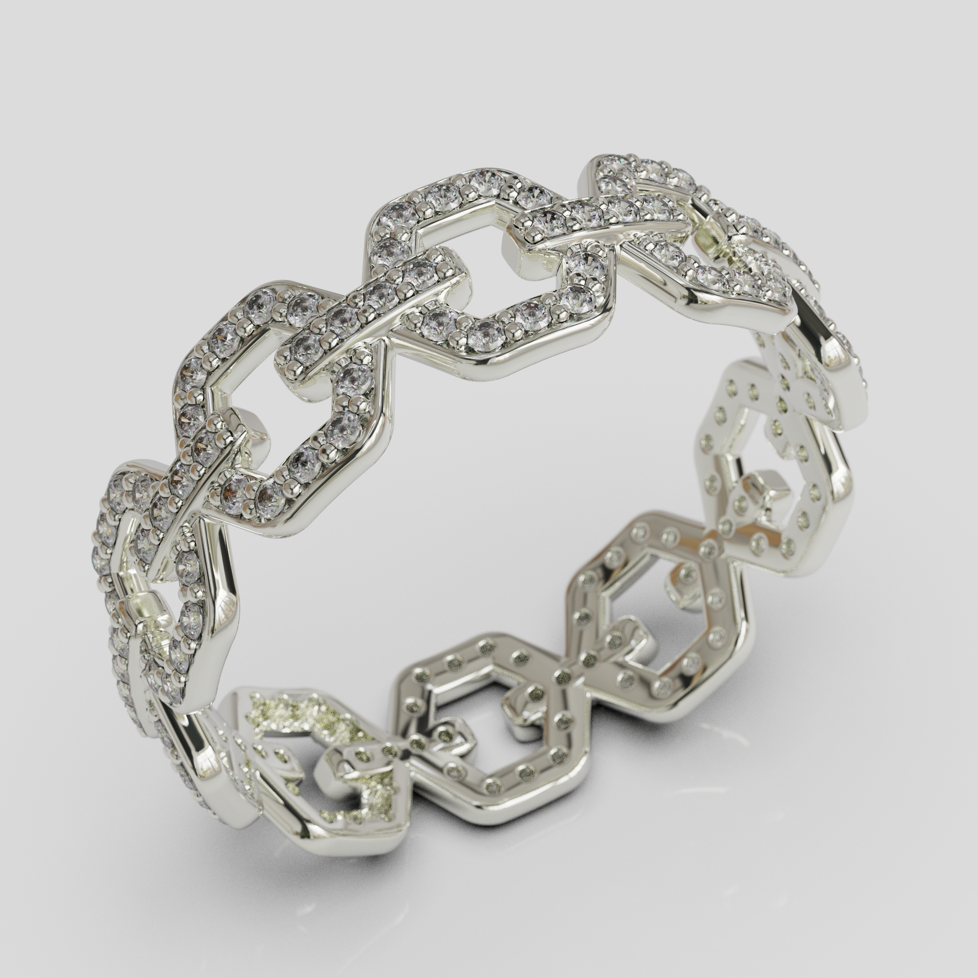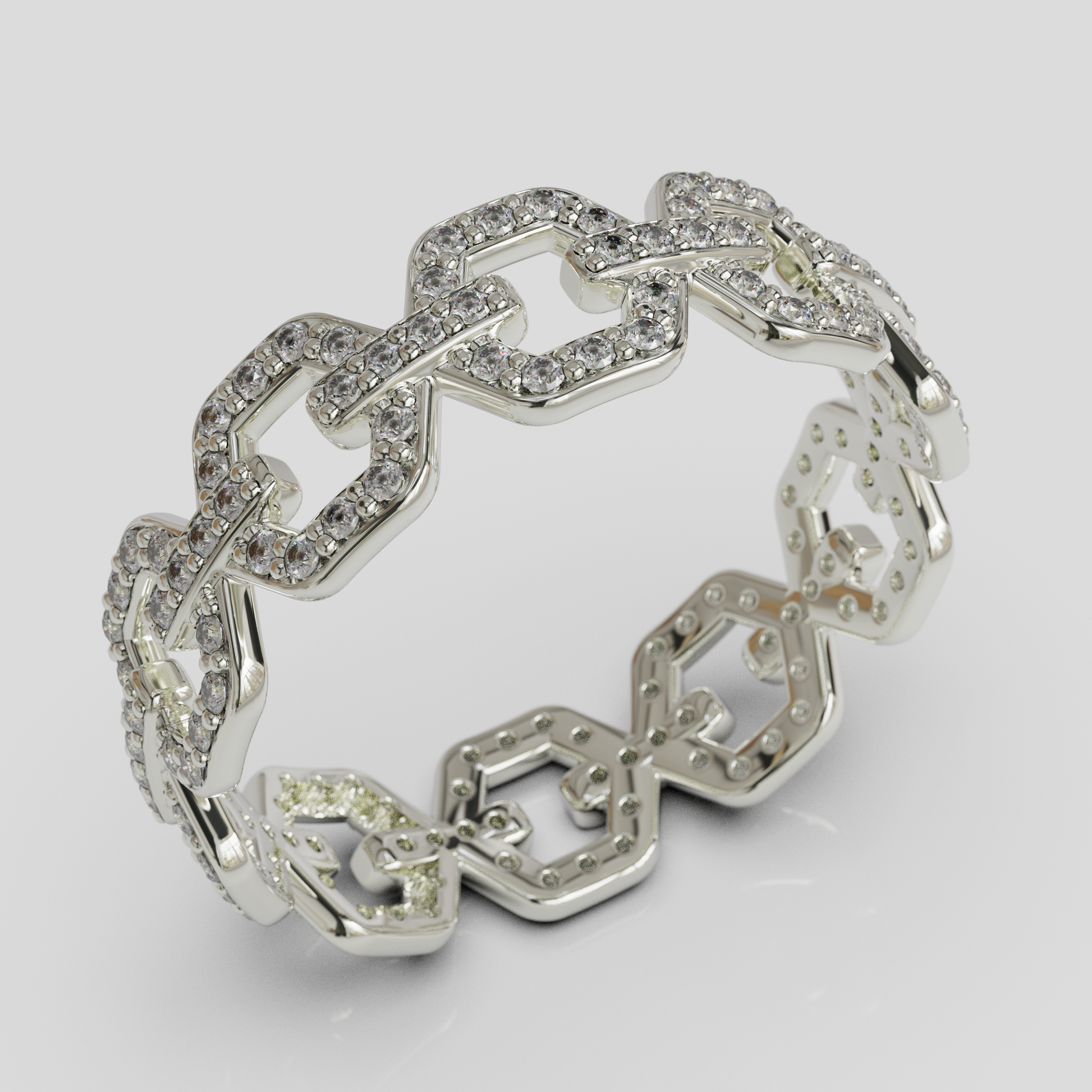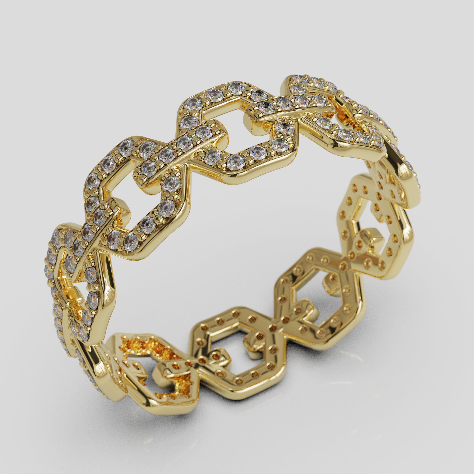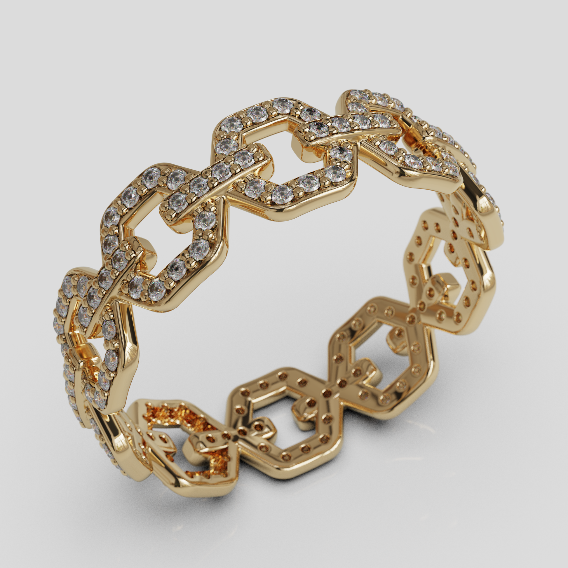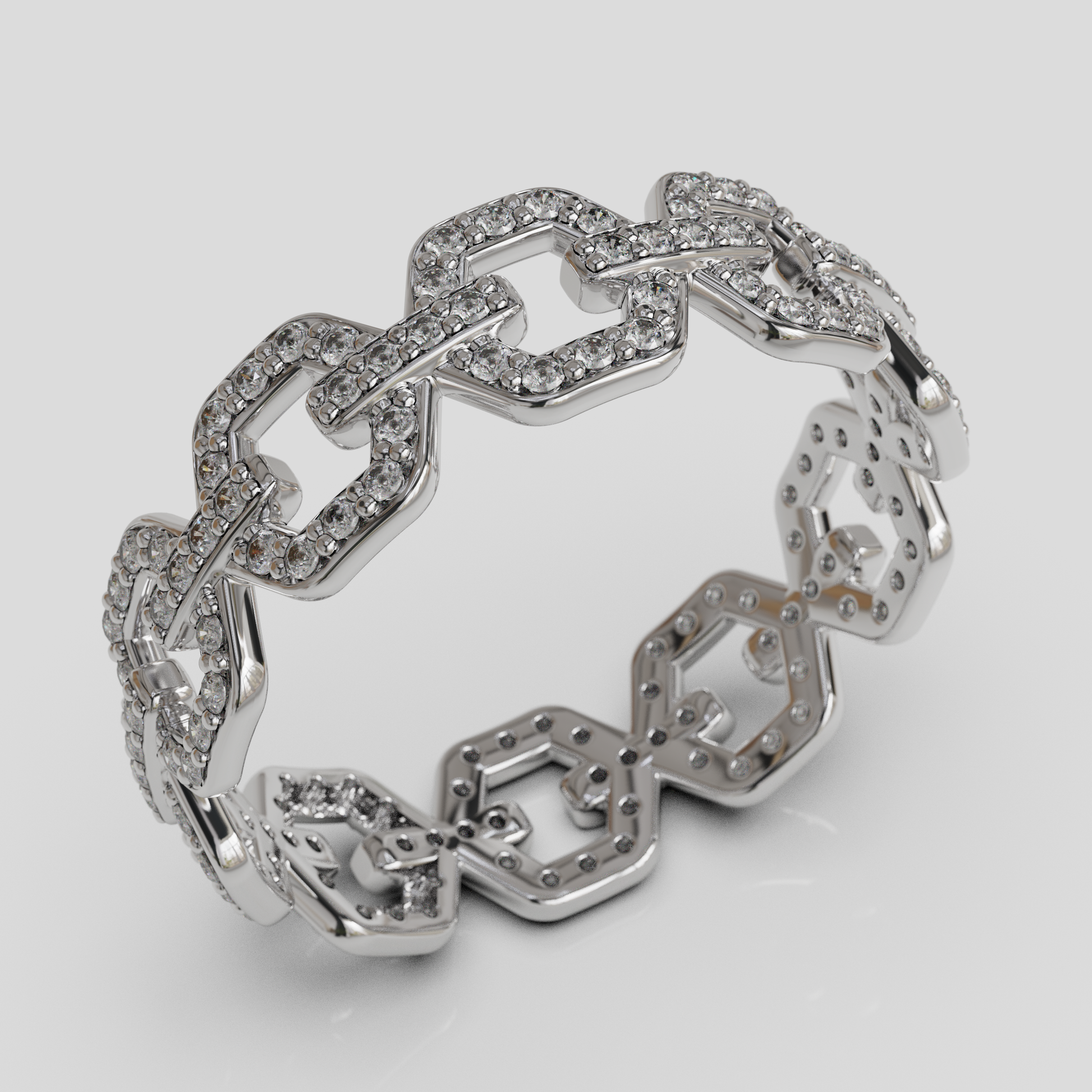 Su estructura de eslabones aporta carácter y personalidad al diseño, convirtiéndolo en una joya ideal para quienes buscan un anillo moderno, sofisticado y con presencia. Es una pieza perfecta para complementar tanto looks elegantes como estilos más cotidianos, aportando un toque distintivo a cualquier conjunto.