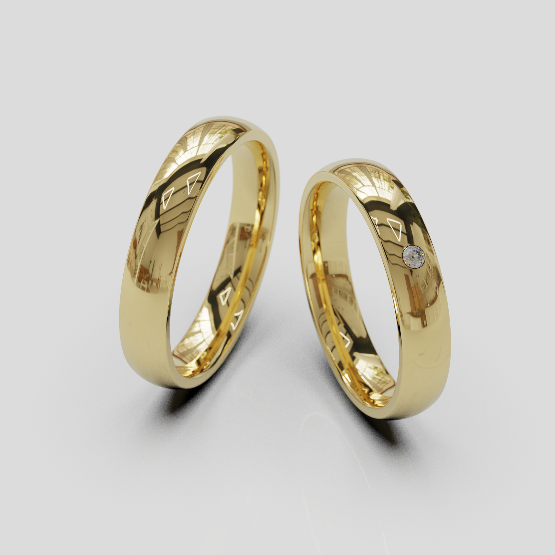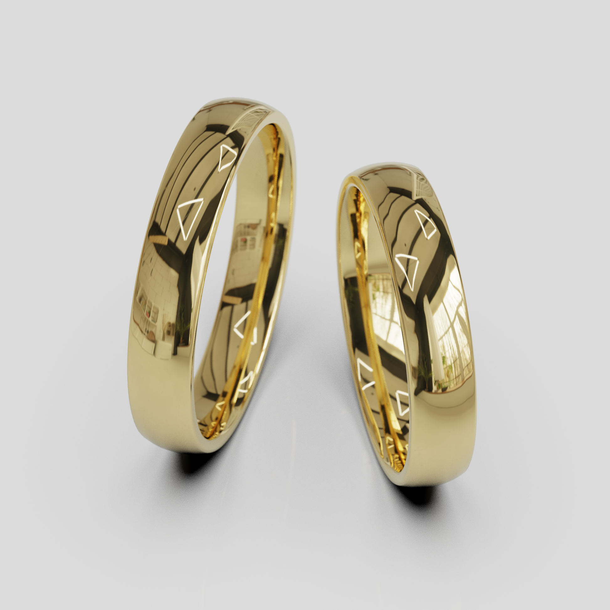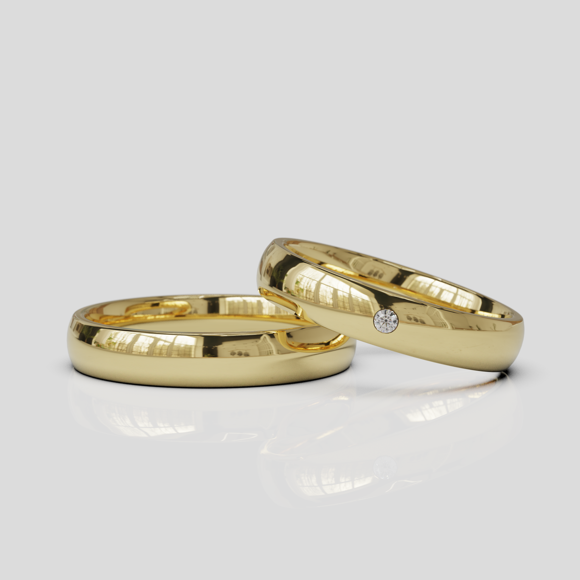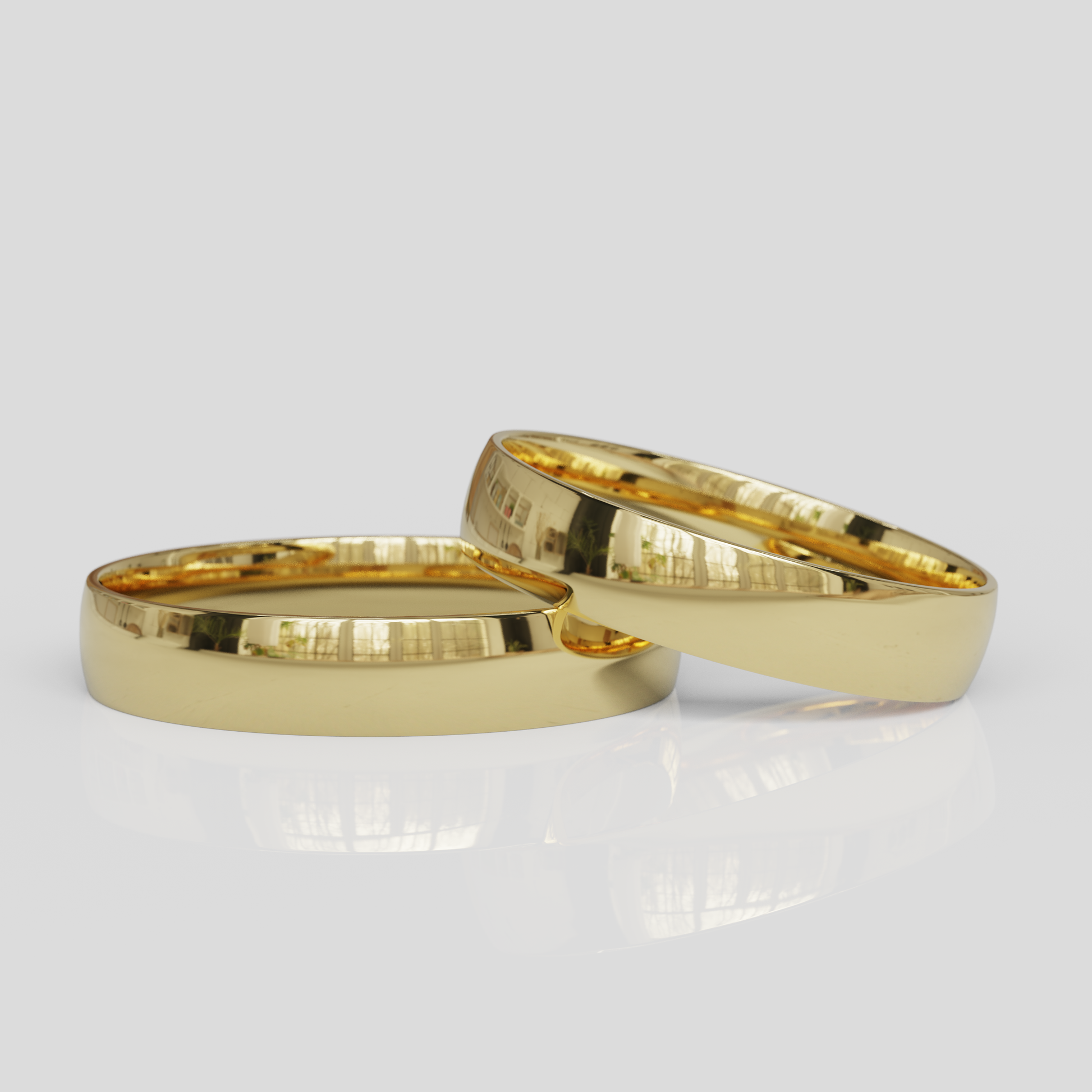 Las argollas de media caña son un clásico eterno en las joyas de matrimonio: su diseño presenta un aro levemente curvado en la parte exterior, lo que les da un estilo equilibrado entre sencillez y elegancia. Con 4 mm de ancho, este modelo logra un protagonismo sutil, ideal para quienes buscan una argolla con carácter sin perder delicadeza.