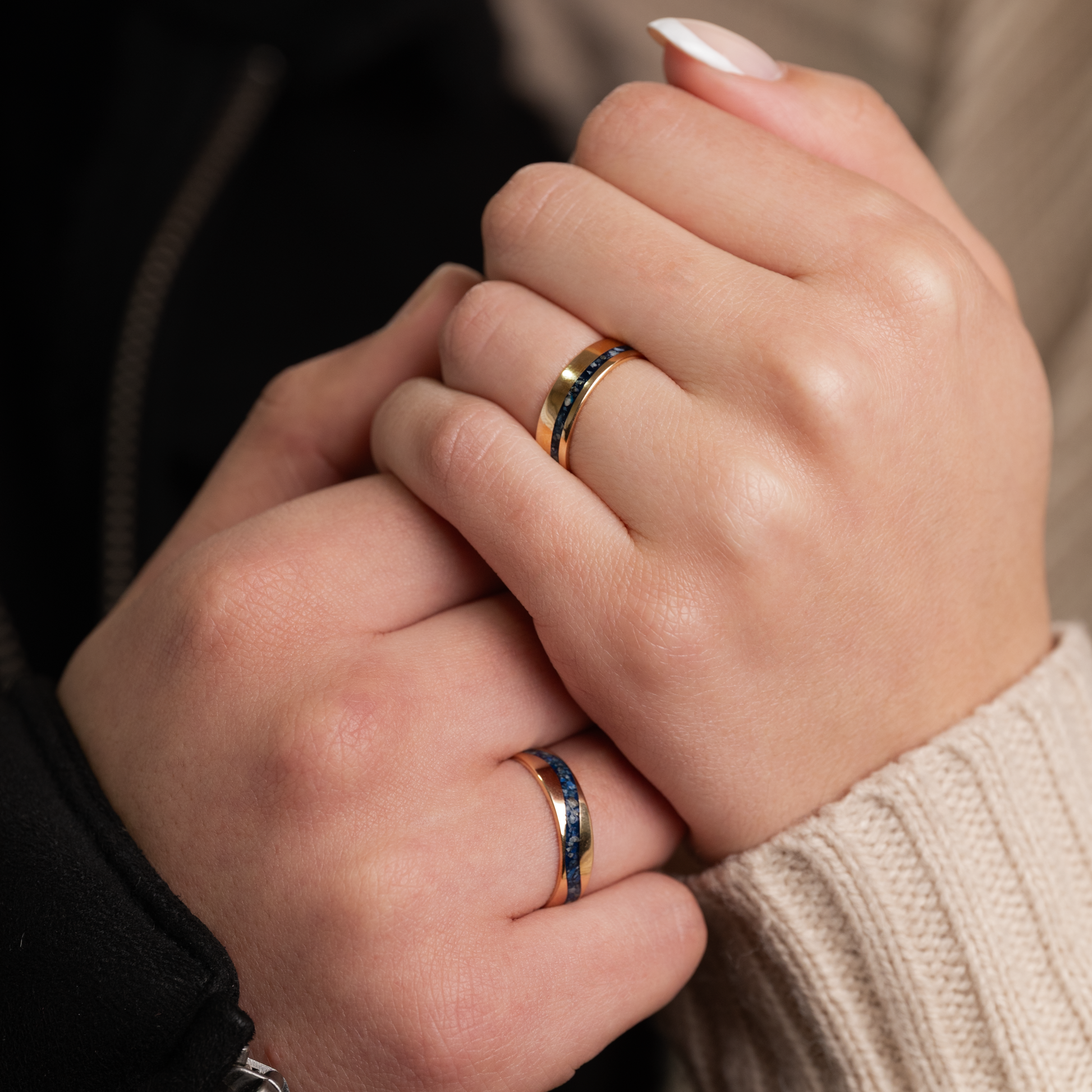 Un diseño único que fusiona la elegancia atemporal del oro con la fuerza mística del lapislázuli. Sus intensos tonos azules transmiten sabiduría y equilibrio, mientras que el oro realza su brillo y simboliza la eternidad de un amor auténtico. Una pieza que celebra la unión, combinando tradición y distinción en cada detalle.