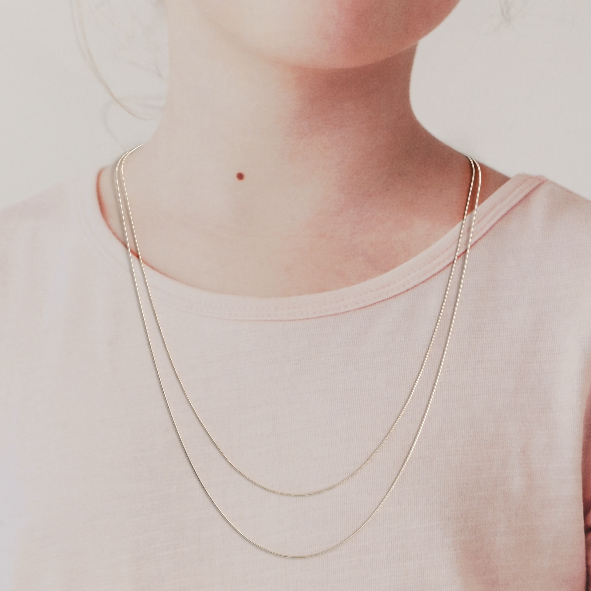 Con una forma rígida que se adapta naturalmente al cuello, esta cadena es ideal para quienes buscan una pieza estructurada y con presencia. Perfecta para usar sola o con dijes planos, es una opción clásica y moderna al mismo tiempo.