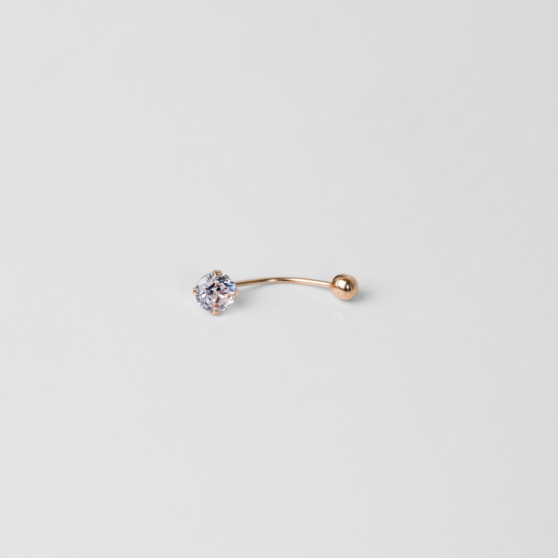 Un diseño clásico y femenino que combina la elegancia del oro rosado con el brillo de una circón de alta calidad que destaca por su brillo en ambos extremos, aportando luz y elegancia al ombligo