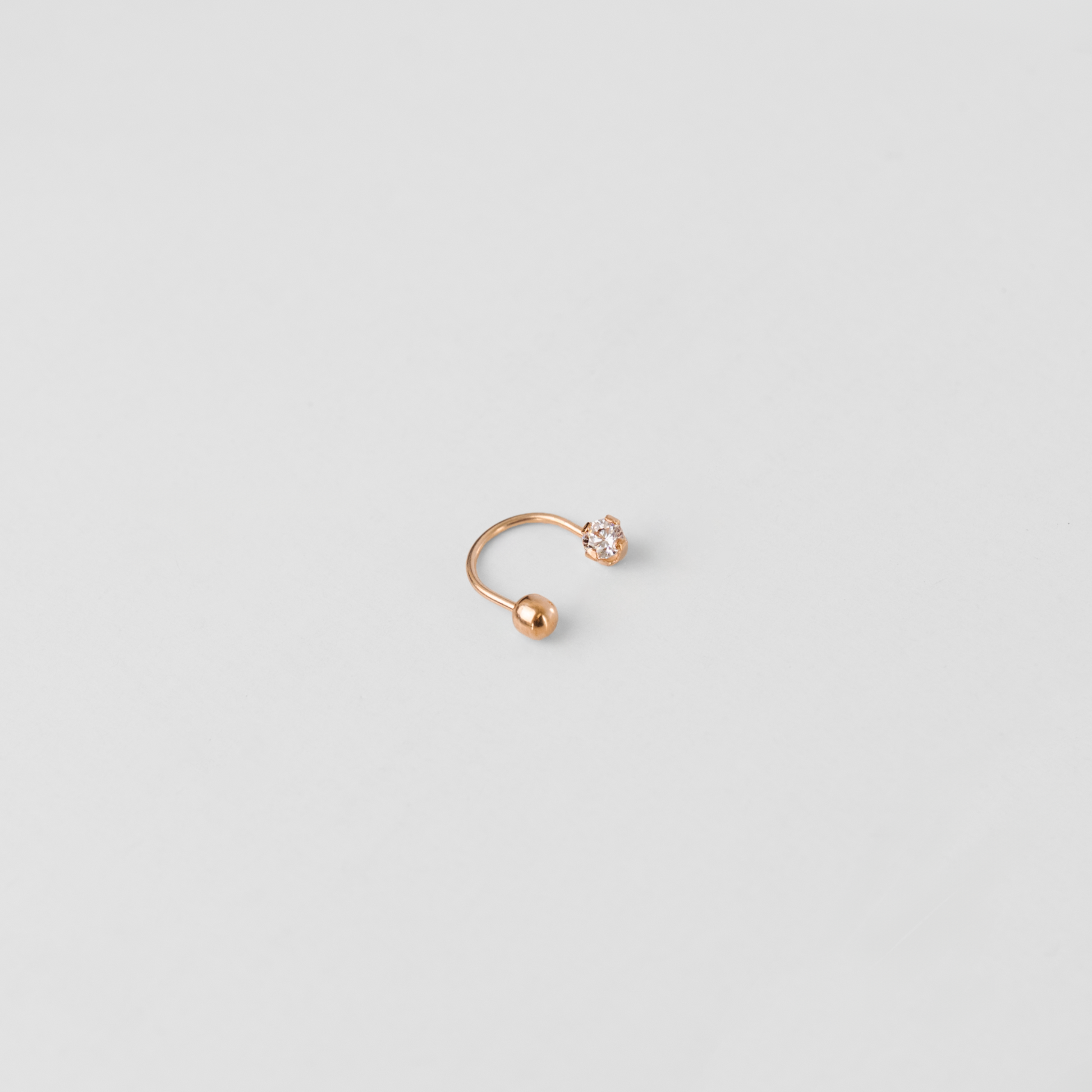 El accesorio ideal para quienes buscan estilo y versatilidad. Este piercing de Oro Rosado 18K es perfecto para septum, pero también puede usarse en, tragus, hélix, daith, lóbulo o anti-hélix.